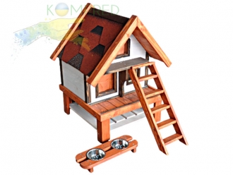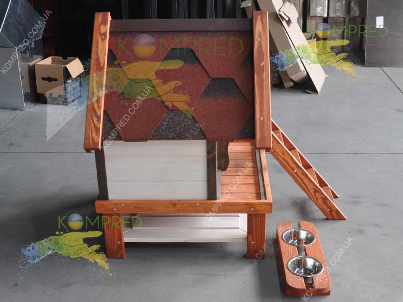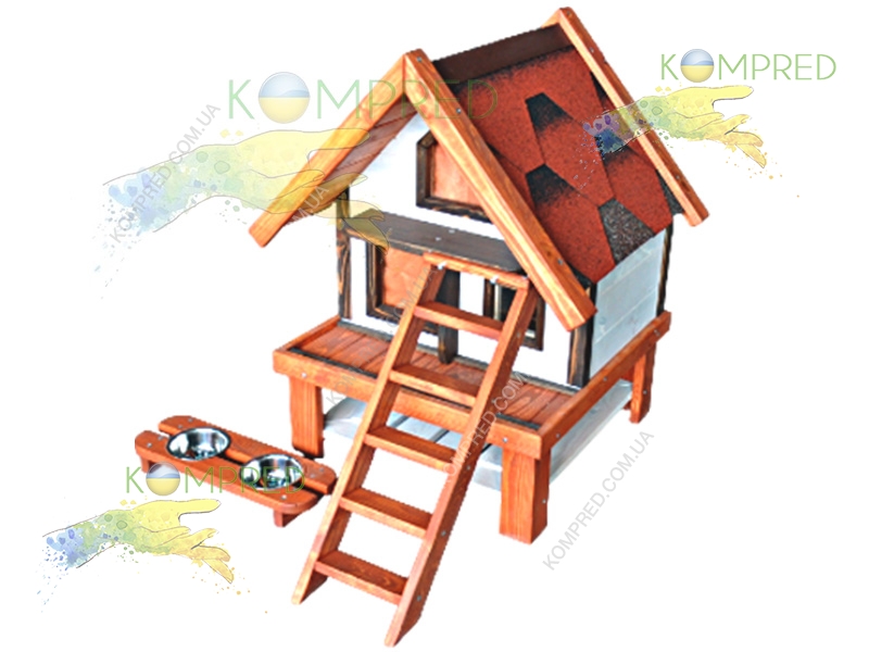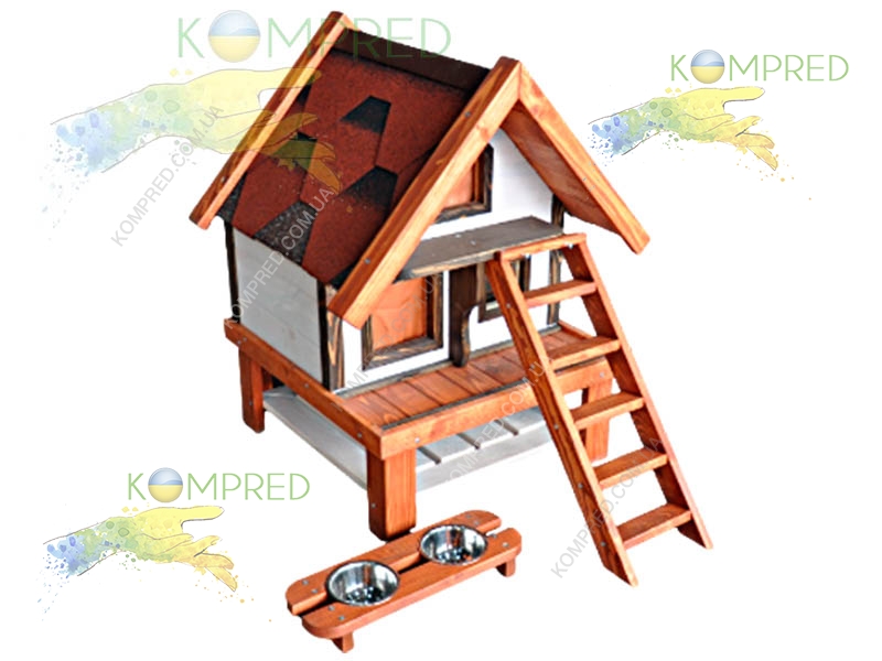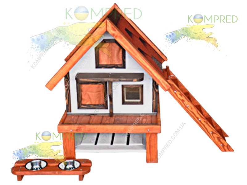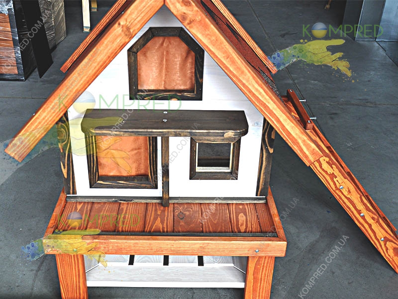 - Будиночок виготовлений із натуральної сосни, що забезпечує екологічність, теплоізоляцію та комфорт для тварин.