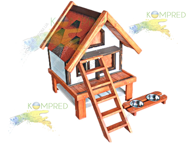 Будиночок для котів дерев'яний Затишок 600х600х1000мм Kompred OL913