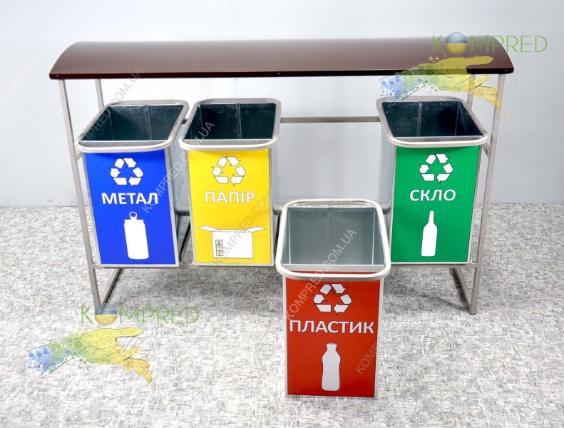 Контейнер для сортування сміття на 4 баки — сучасне та надійне рішення для підтримання чистоти і впровадження культури роздільного збору відходів. Замовляйте стандартну або індивідуальну модель — ми адаптуємо її під ваші потреби!