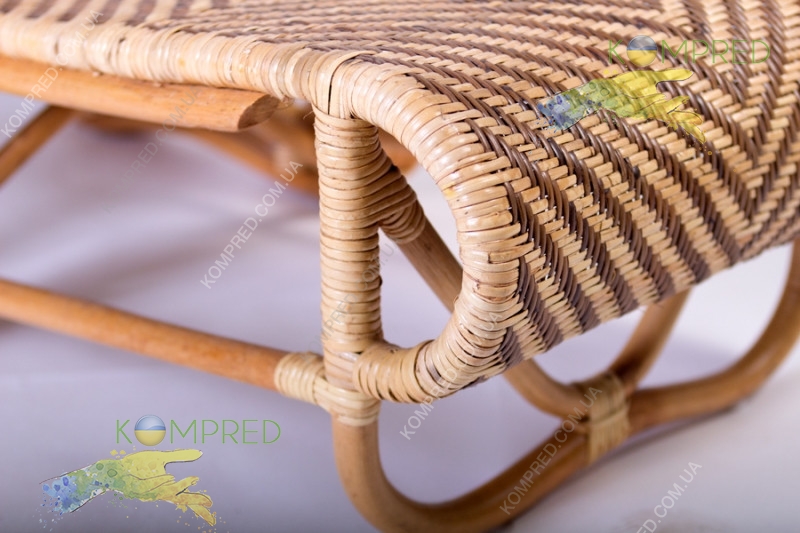 Крісло-шезлонг розкладне з висувним пуфиком з натурального ротанга