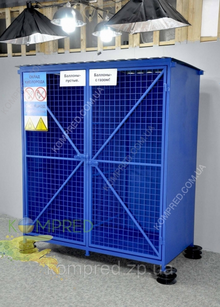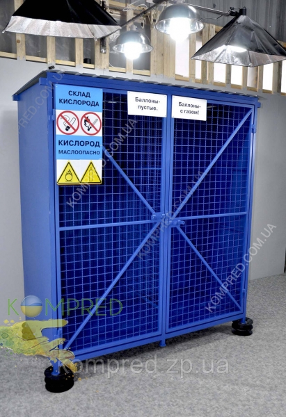 - Кліть підходить для комунальних служб, медичних установ, промислових підприємств, де необхідне регламентоване та безпечне зберігання газових балонів.
