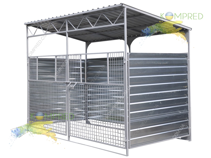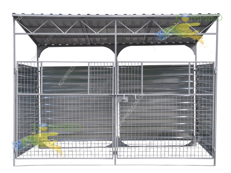 Каркас — профільна труба. Стіни і дах — металопрофіль стіновий, товщиною не менше 0,45 мм. Передня стінка — сітка огороджувальна з «вікном» для скидання сміття. Вивантаження контейнерів — бічне.