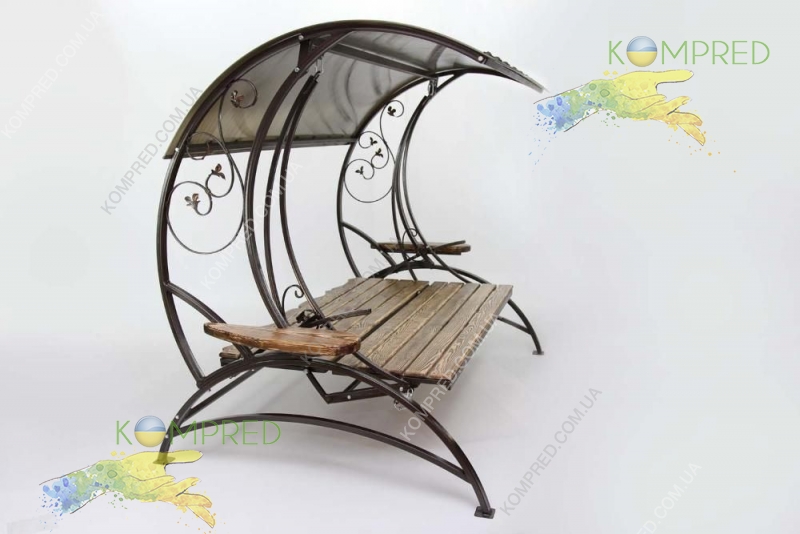 Навіс з полікарбонату, повноцінно захищає від усіх атмосферних явищ, і дозволяє не прибирати Вашу гойдалку на зиму. Таким чином у сонячний та зимовий день Ви можете похитатися на Вашій гойдалці попиваючи гарячий чай чи каву!