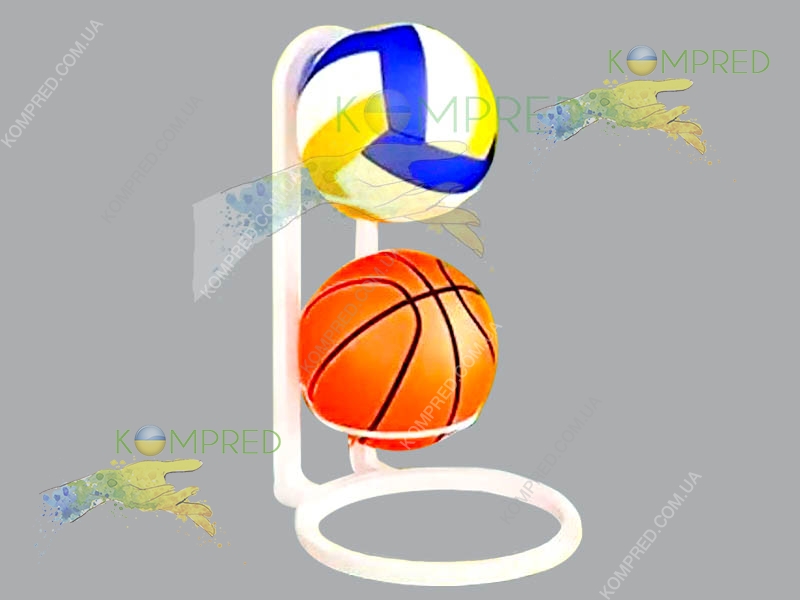 Зручна та стильна стійка-стенд призначена для компактного вертикального зберігання до двух спортивних м'ячів. Ідеально підходить для використання у спортивних залах, магазинах, фітнес-центрах та навіть вдома.