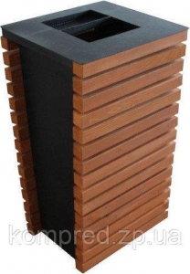 Конструкція урни цільнозварювальна.Збір сміття відбувається безпосередньо у сміттєвий пакет, закріплений на металевій рамці. Обрешітка урни виконана дерев'яним брусом пофарбованим спеціальним просоченням по дереву. Урна стоїть на пластикових заглушках.Каркас урни виготовлений із сталевої профільної труби різного перерізу.Покриття урни - полімерна порошкова фарба. Колірне рішення за заявкою.