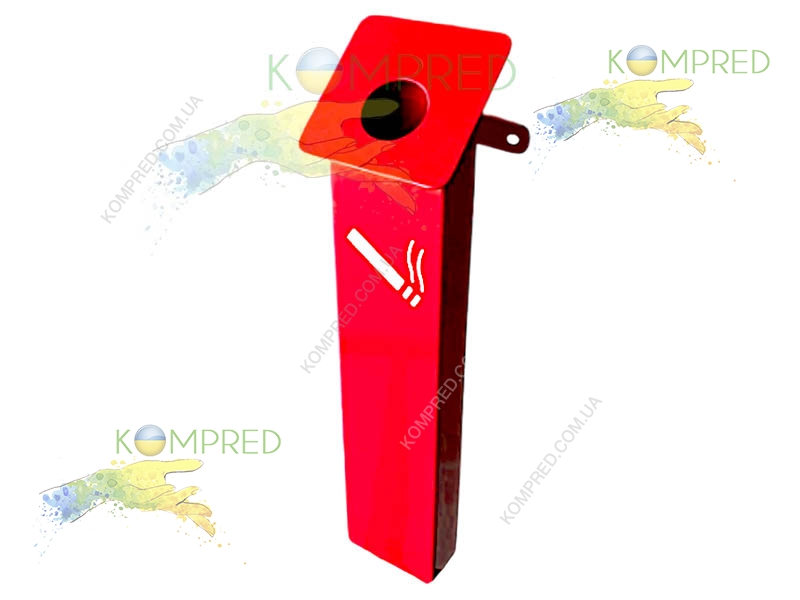 Урна попільниця настінна вулична 80х40х450 мм червона Kompred OL449/1