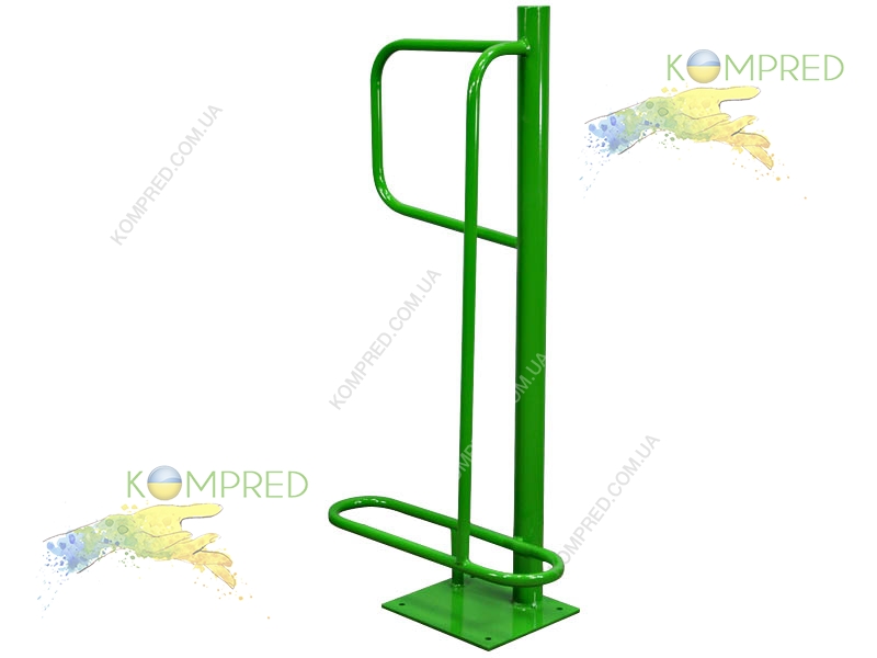Це велосипедне паркування виготовлене з міцної профільної труби, покрите порошковим полімерним фарбуванням, що забезпечує стійкість до корозії та механічних пошкоджень. Паркування має додатковий кронштейн для упору рами велосипеда, що забезпечує стабільність і захист від падінь. Модель розрахована на розміщення двох велосипедів, що робить її ідеальною для міста, ОСББ та бізнесу.
