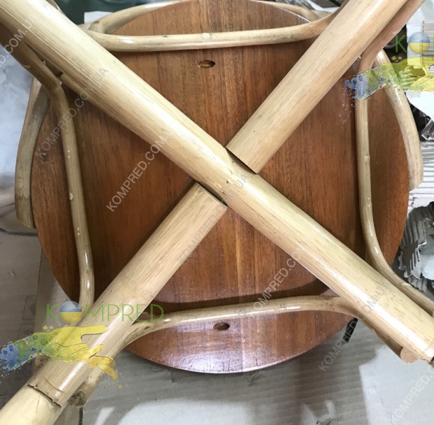 Віденський стілець виготовлений з натурального ротанга у коричневому кольорі. Ніжки та спинка виготовлені із ротанга, а кругле сидіння з дерева. Спинка та сидіння укріплені ребрами жорсткості. Подвійна хрестовина під сидінням і на ніжках робить стілець досить міцним і здатним витримати навантаження до 120 кг.
